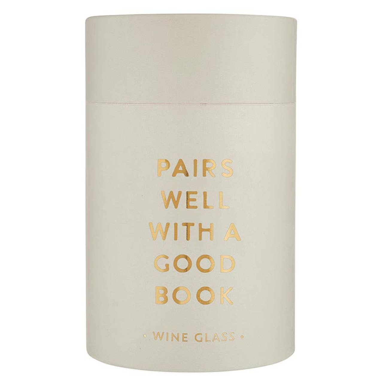 Elevate your gatherings with our stemless wine glass featuring elegant gold foil accents. Each glass and its packaging proudly display the phrase "Pairs Well with A Good Book," making it a charming gift option. Packaged in a sleek tube, this versatile glass is perfect for serving a variety of beverages while adding a touch of sophistication to any occasion.