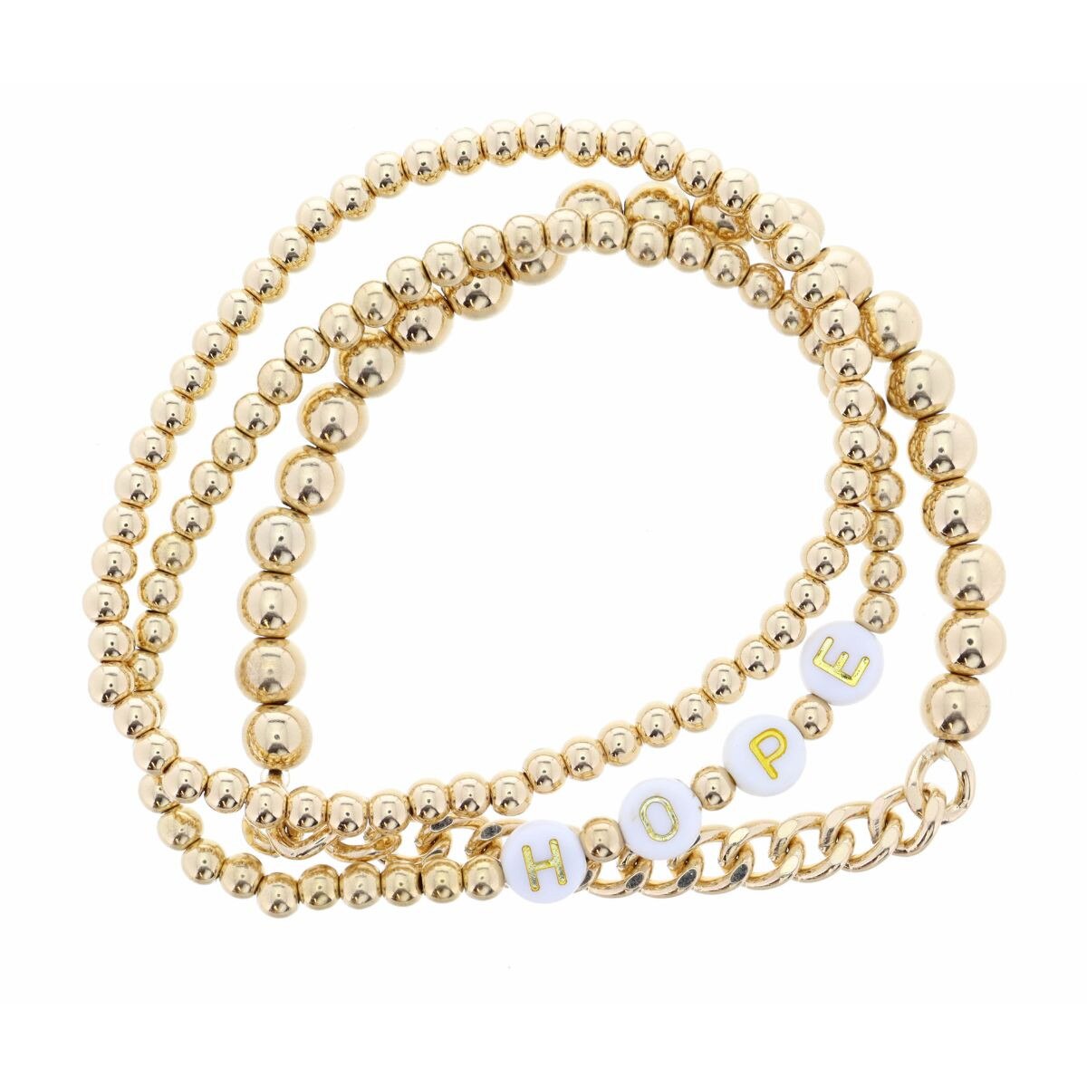 Boost your style with the elegant and timeless Hope Gold Bracelet. Made with the finest quality materials, this bracelet will add a touch of luxury to any outfit. Wear it with confidence and make a statement. The perfect accessory for any occasion.