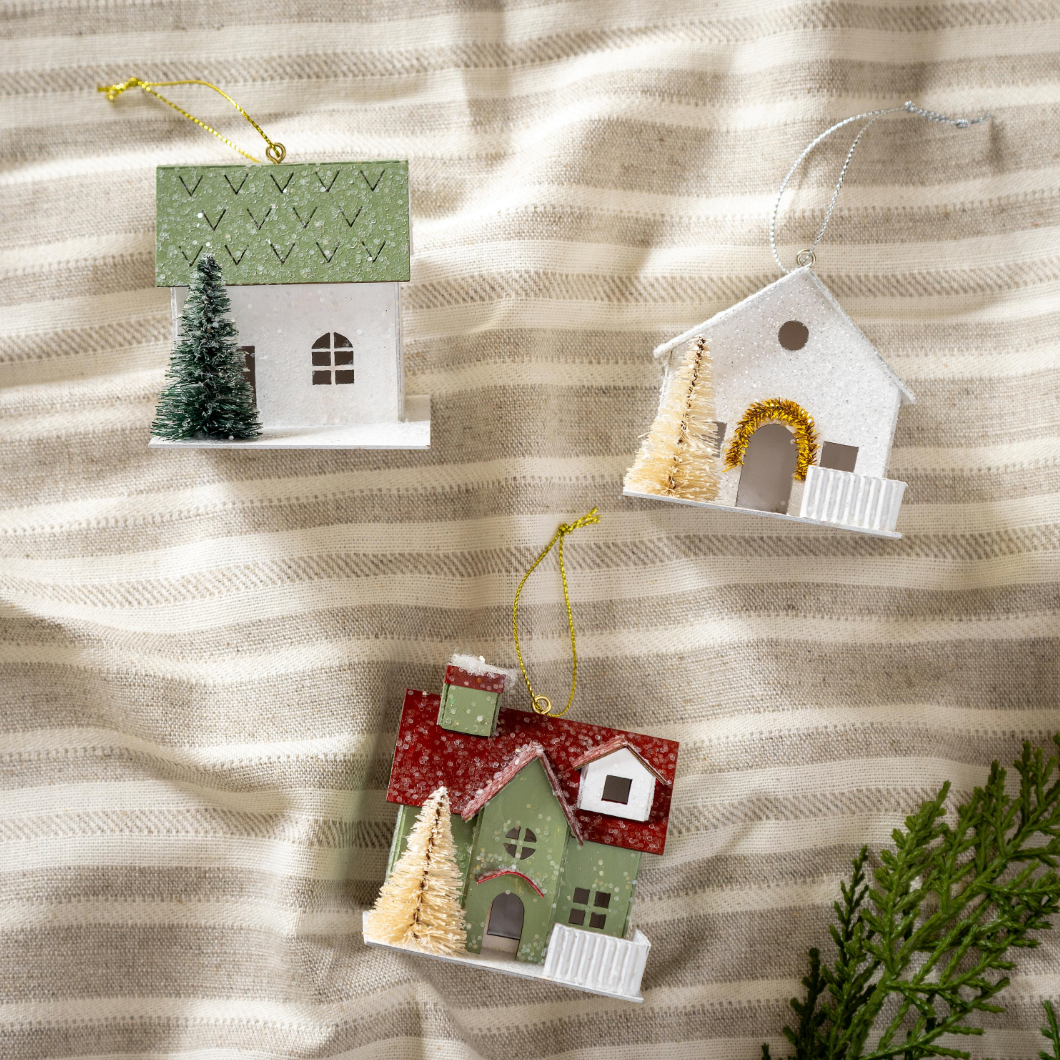 Add a charming touch to your holiday decor with this set of three VivaStyle paper ornaments featuring quaint houses and bottle brush trees. Each ornament measures 2.75 inches high, perfect for adding festive detail to your Christmas tree or seasonal displays. Lightweight and easy to hang, these ornaments bring a cozy, handcrafted feel to your home during the holidays. Ideal for creating a warm, inviting atmosphere or gifting to loved ones who appreciate unique seasonal decorations.