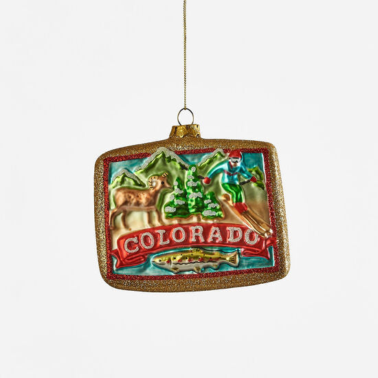 Celebrate the beauty of Colorado with this elegant glass ornament. Crafted with care, it captures the state's charm and makes a perfect keepsake or gift. Ideal for holiday decorating or year-round display, this ornament adds a touch of Colorado spirit to any space. Durable and beautifully designed, it’s a meaningful way to showcase your love for the Centennial State.