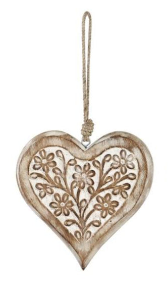 White Washed Wood Heart Ornament