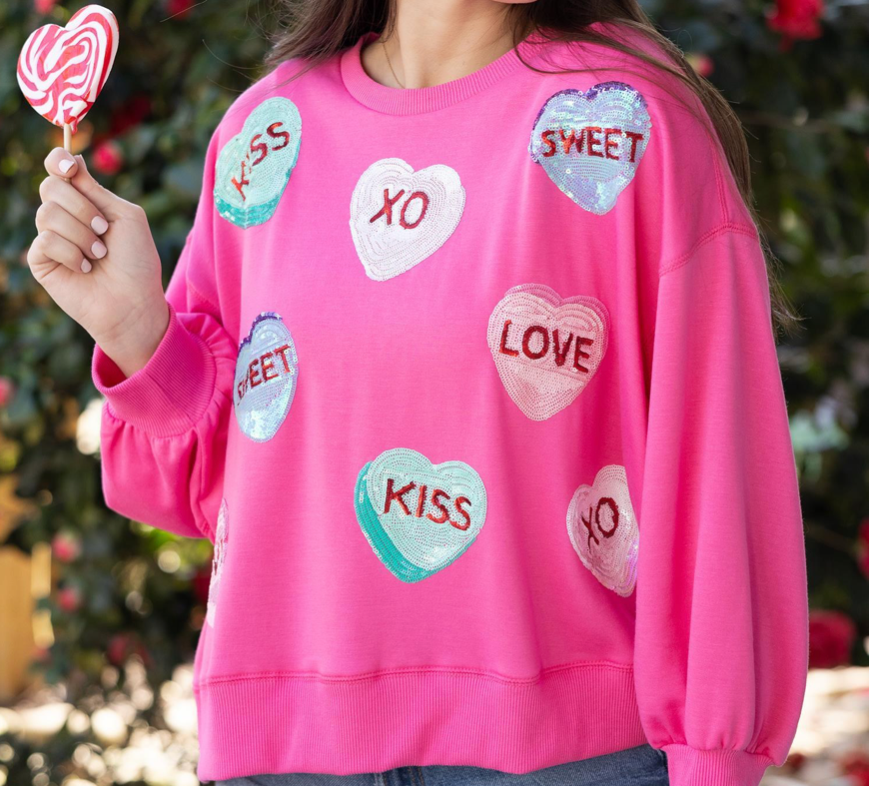 Stay cozy and sweet with the Millie Candy Heart Sweatshirt by Mary Square. Featuring a charming candy heart design, this soft sweatshirt offers comfortable warmth and playful style. Perfect for casual wear or gifting, it adds a touch of fun to your wardrobe while keeping you snug all day long.