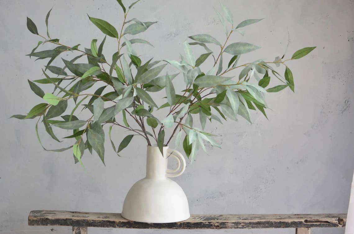 Gorgeous gray-green artificial eucalyptus leaf spray is absolutely beautiful greenery for your home floral arrangement or wedding greenery.