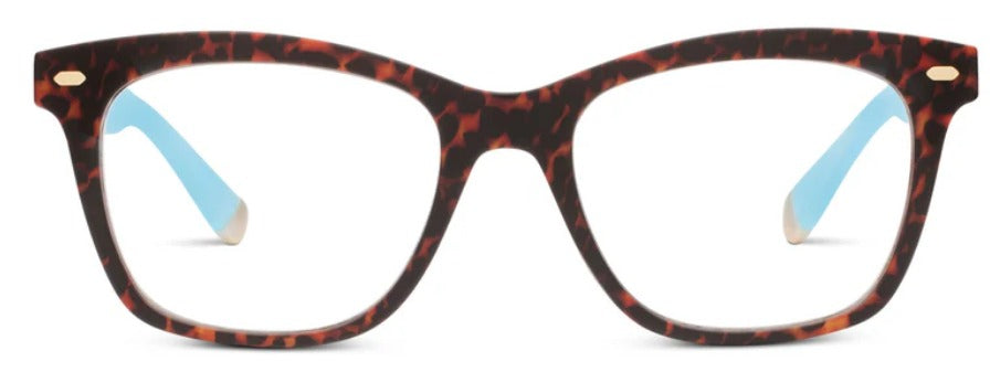 Sinclair lets you put your personality on full display. Understated patterned fronts give way to expressive color pops on the temples and polished metal touches, all wrapped up in a classic cat eye shape. Available in two can't-miss color styles: leopard tortoise/blue