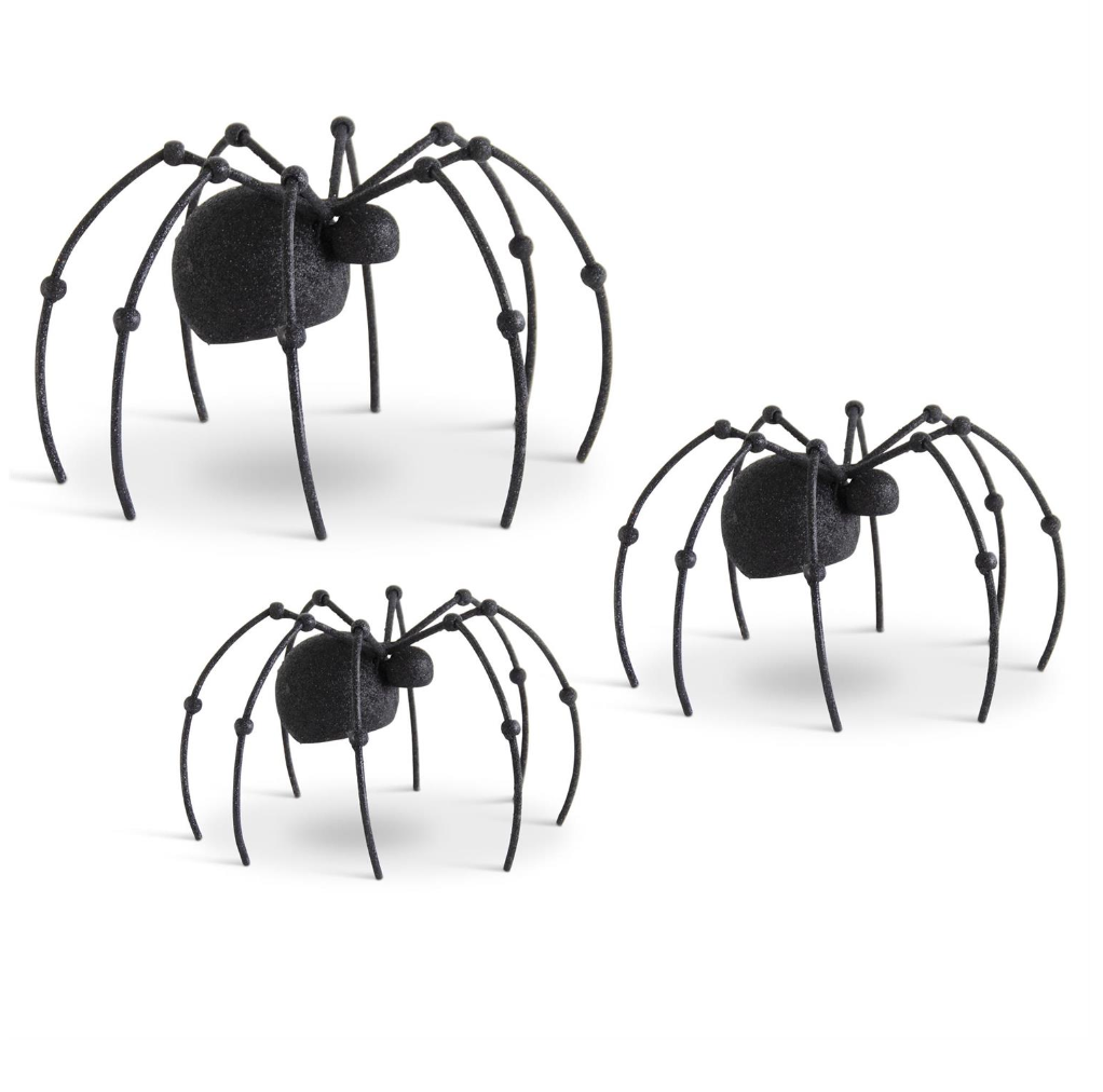 Add a spooky sparkle to your Halloween décor with this Set of 3 Glittered Black Spiders. Made from durable metal, they come in two sizes—small (4.75" H x 6" diameter) and medium (5.75" H x 8" diameter)—perfect for versatile decorating. With overall dimensions of 6.5" H x 10.25" W x 10.25" D, these glittered spiders catch the light to enhance your seasonal displays, creating an eye-catching eerie effect for parties, porch decorations, or haunted setups.