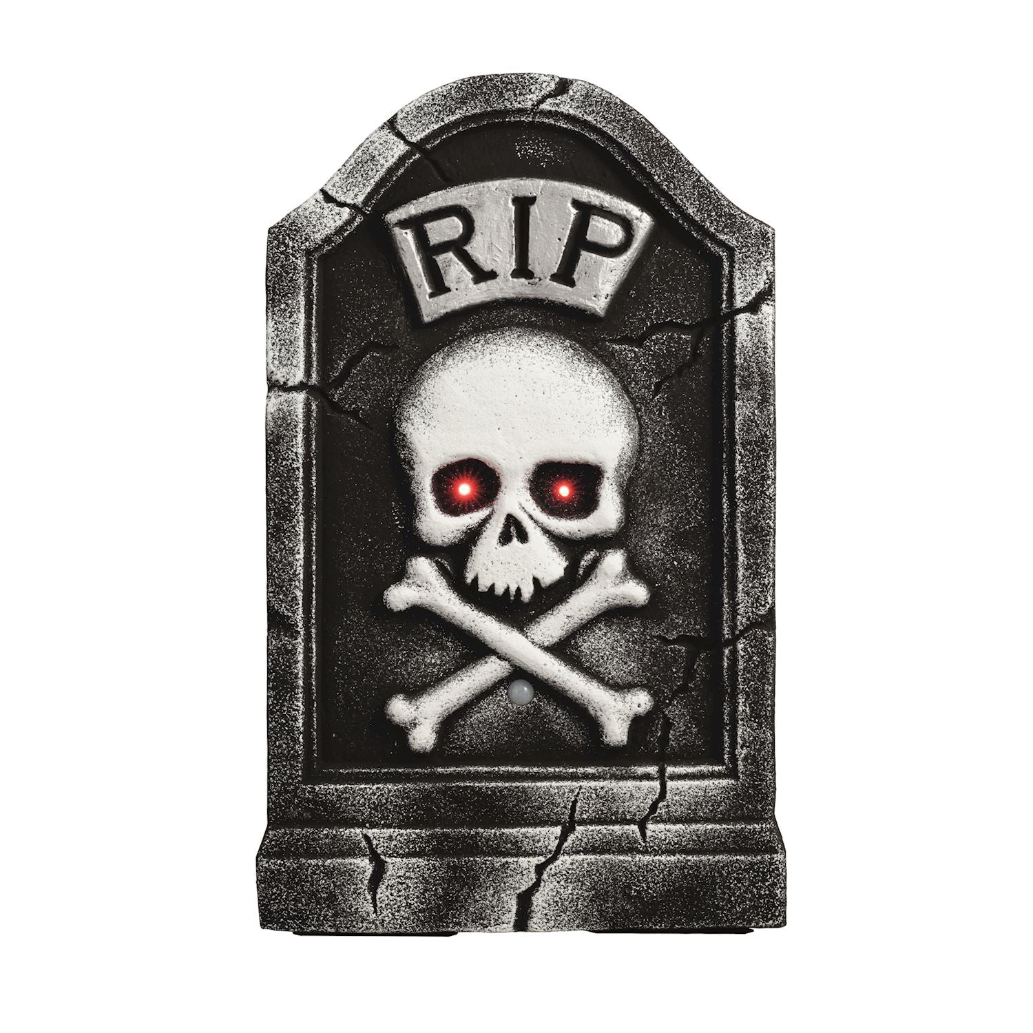 Enhance your Halloween setup with this hand-painted foam LED Tombstone Decor. Featuring motion-activated LED lights and spooky sound effects, it creates a chilling ambiance that captivates guests. Easy to set up, it requires 2 AAA batteries (not included) for seamless operation. Perfect for adding a haunted touch to your indoor or outdoor decorations.