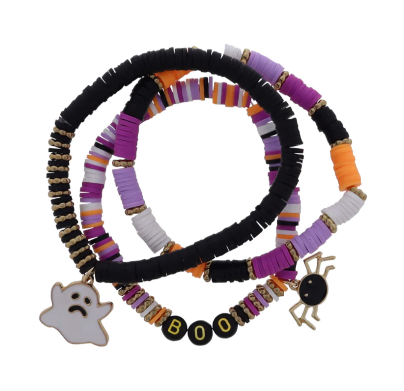 Celebrate the spooky season with this Set of 3 Halloween Bracelets, perfect to complement any festive outfit. Each bracelet features unique Halloween-themed designs, adding a fun and stylish touch to your celebrations. Lightweight and comfortable, these bracelets are ideal for parties, trick-or-treating, or as a seasonal accessory. Enhance your Halloween look effortlessly with this versatile set that captures the spirit of the holiday.