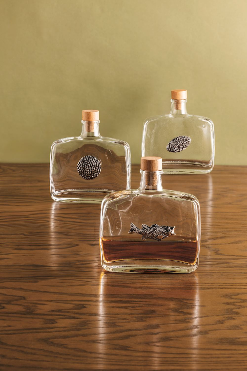 Elevate your bar collection with the Metal Icon Decanter, showcasing a durable cast aluminum icon exterior for a striking industrial look. Its cork stopper with a wooden top ensures an airtight seal, preserving the freshness of your favorite spirits. Perfect for both display and functional use, this decanter combines style with practicality to enhance your drinking experience.