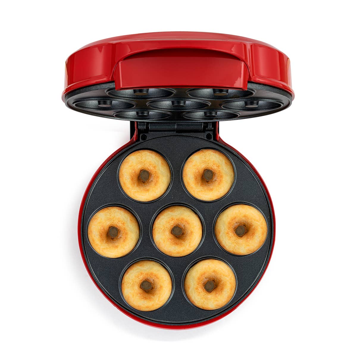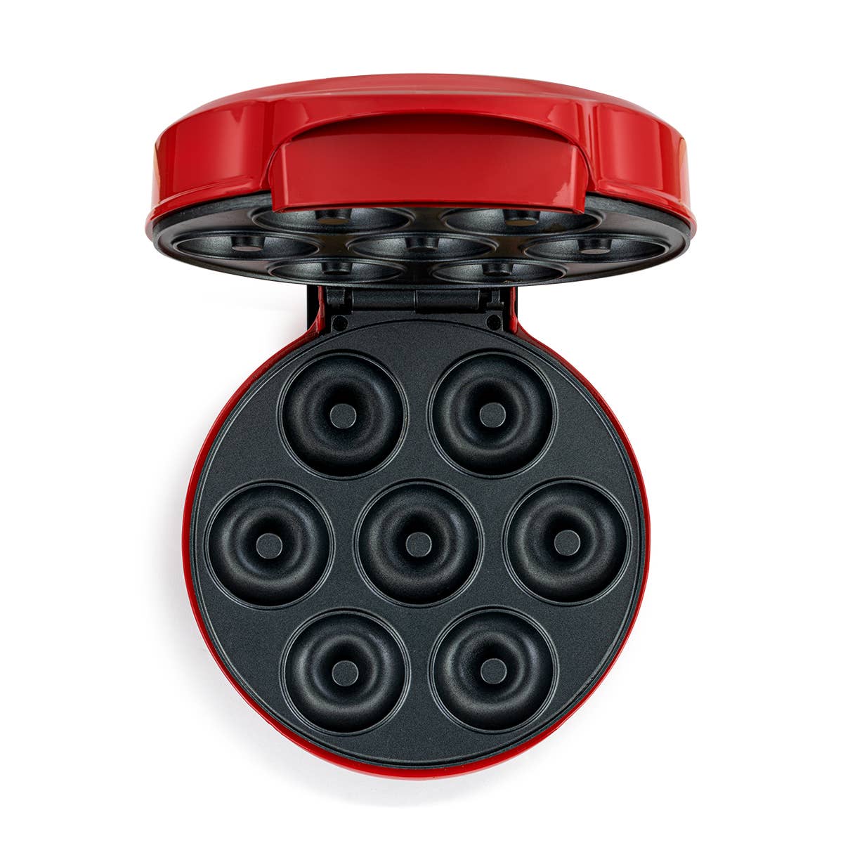 7- COUNT MINI DONUT MAKER DOUGHNUTS RED STAINLESS STEEL
