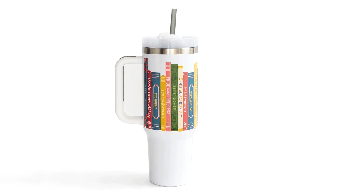 Stay refreshed with the 40oz Books Tumbler, designed for passionate readers and book lovers. Featuring a hand-drawn illustration of a stacked pile showcasing classics like Pride and Prejudice, The Great Gatsby, and Little Women, this stainless steel tumbler keeps drinks hot or cold with double-wall insulation. It includes a leak-proof lid and straw for convenience on the go. Ideal as a gift for avid readers, this 40oz tumbler combines style and function. Handwash only to preserve the vibrant design and durability.