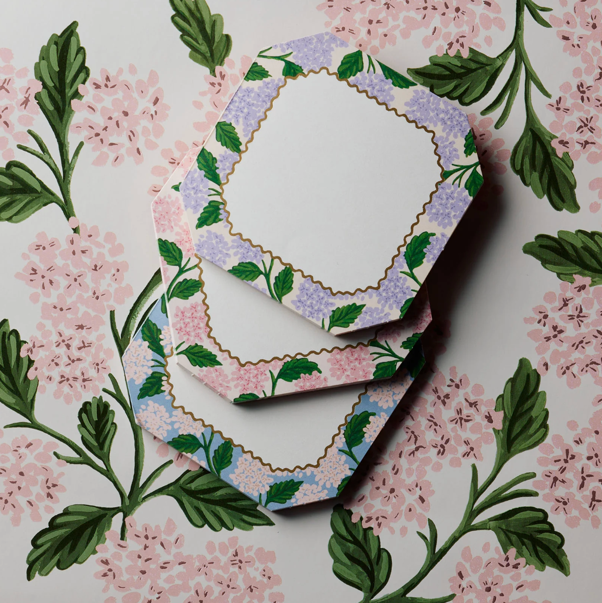 Jot down reminders or leave a sweet note with this set of three floral-bordered notepads, with metallic gold details and 50 tear-off sheets each.