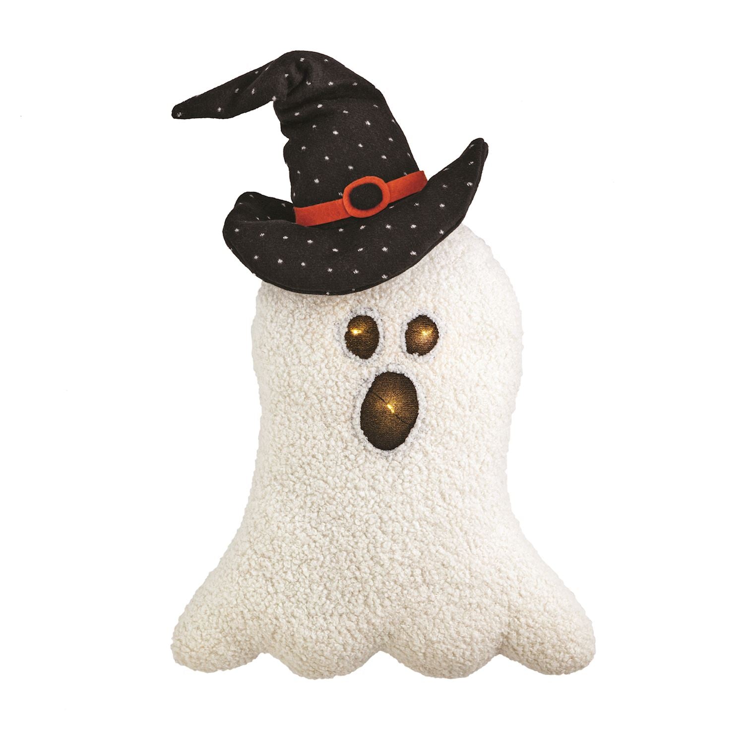 Illuminate your Halloween décor with this cozy Sherpa pillow featuring built-in LED lights. Perfect for adding a festive glow to any room, it requires 2 AAA batteries (not included) for easy setup. Soft and stylish, this LED Halloween pillow combines comfort with seasonal charm, making it a standout accent for your holiday decorations.