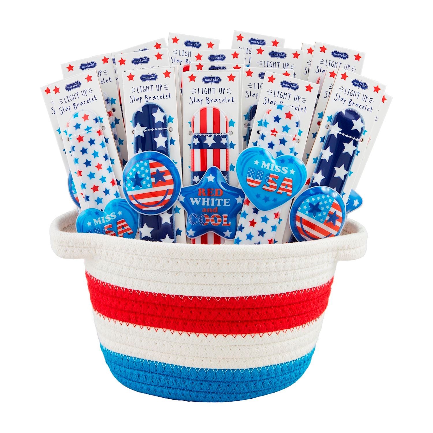 Introducing our LED Patriotic Slap Band - the perfect accessory for your 4th of July celebration! This light-up character slap bracelet is designed for ages 3 and up, and comes with an easy-to-use press icon that activates the LED lights. Comes on a display card! Order now and light up your holiday!