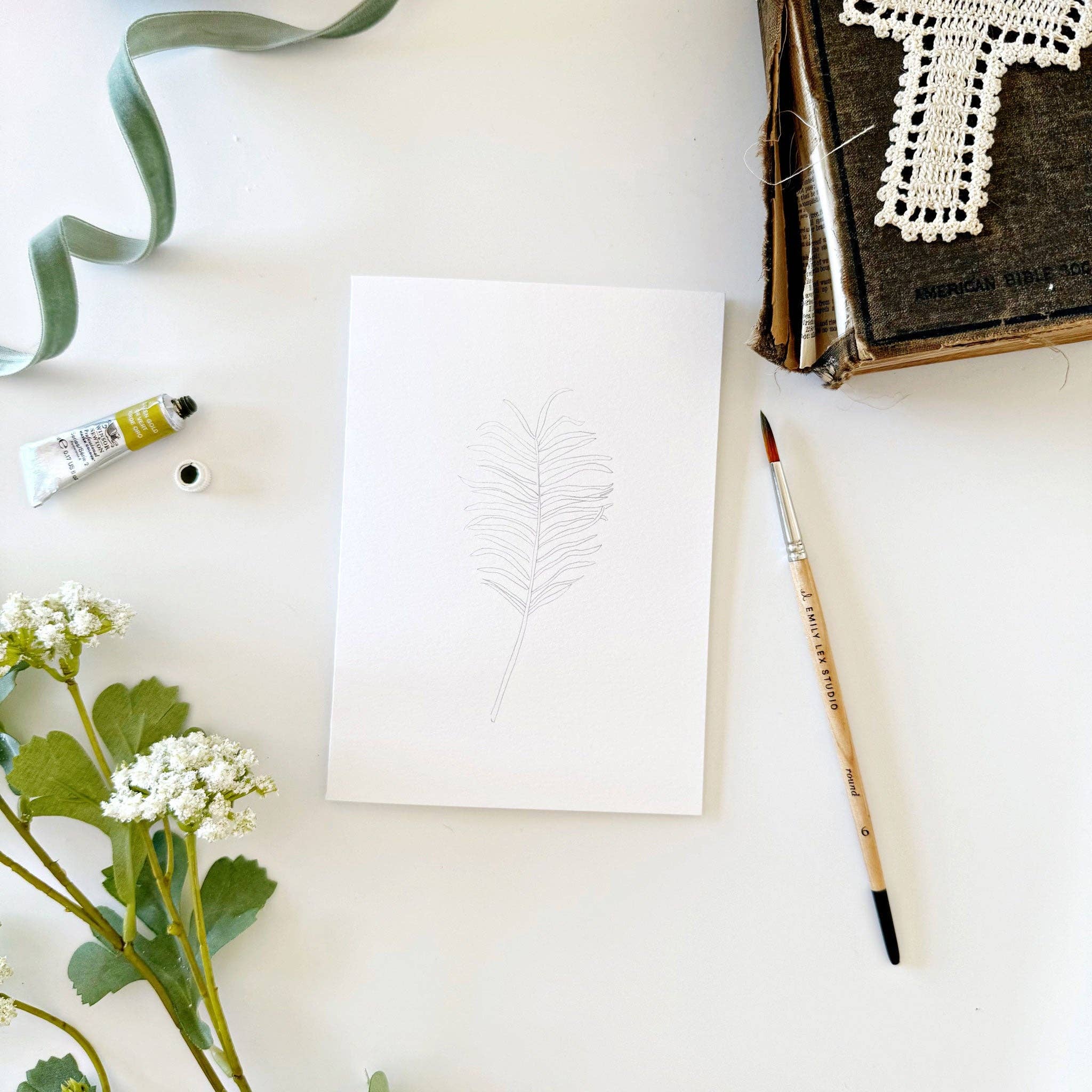 Details: - set of eight paintable notecards + envelopes - two of each illustration lightly sketched for you to paint - blank inside - 5" x 7" - Printed on 110lb watercolor paper
