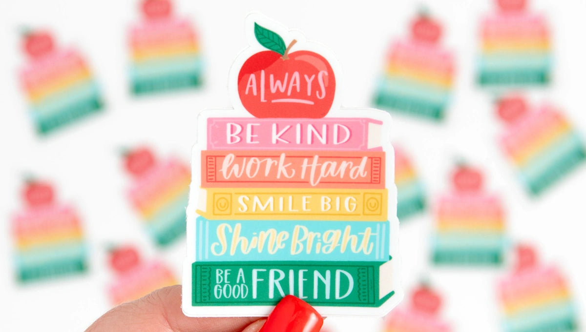Affirmations Book Stack Sticker – inspire daily positivity with this charming vinyl decal featuring stacked books and uplifting messaging. Perfect for book lovers, wellness enthusiasts, and anyone seeking daily motivation, this weather-resistant sticker adheres beautifully to laptops, water bottles, journals, and personal items. Durable and fade-proof, it withstands everyday use and outdoor conditions. Display your love of reading and self-care while spreading encouragement to those around you.