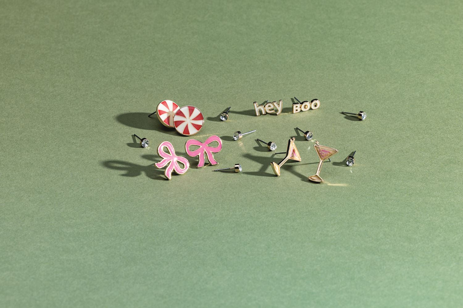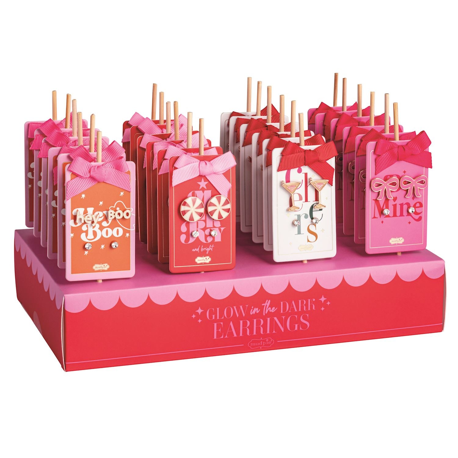 These Glow In The Dark Earrings come as a 2-piece set featuring enamel icon earrings that glow beautifully in the dark, paired with sparkling pavé rhinestone studs. Both styles include hypoallergenic posts for comfortable, irritation-free wear. Perfect for adding a unique, luminous touch to any outfit, this set offers versatile options for day-to-night style.