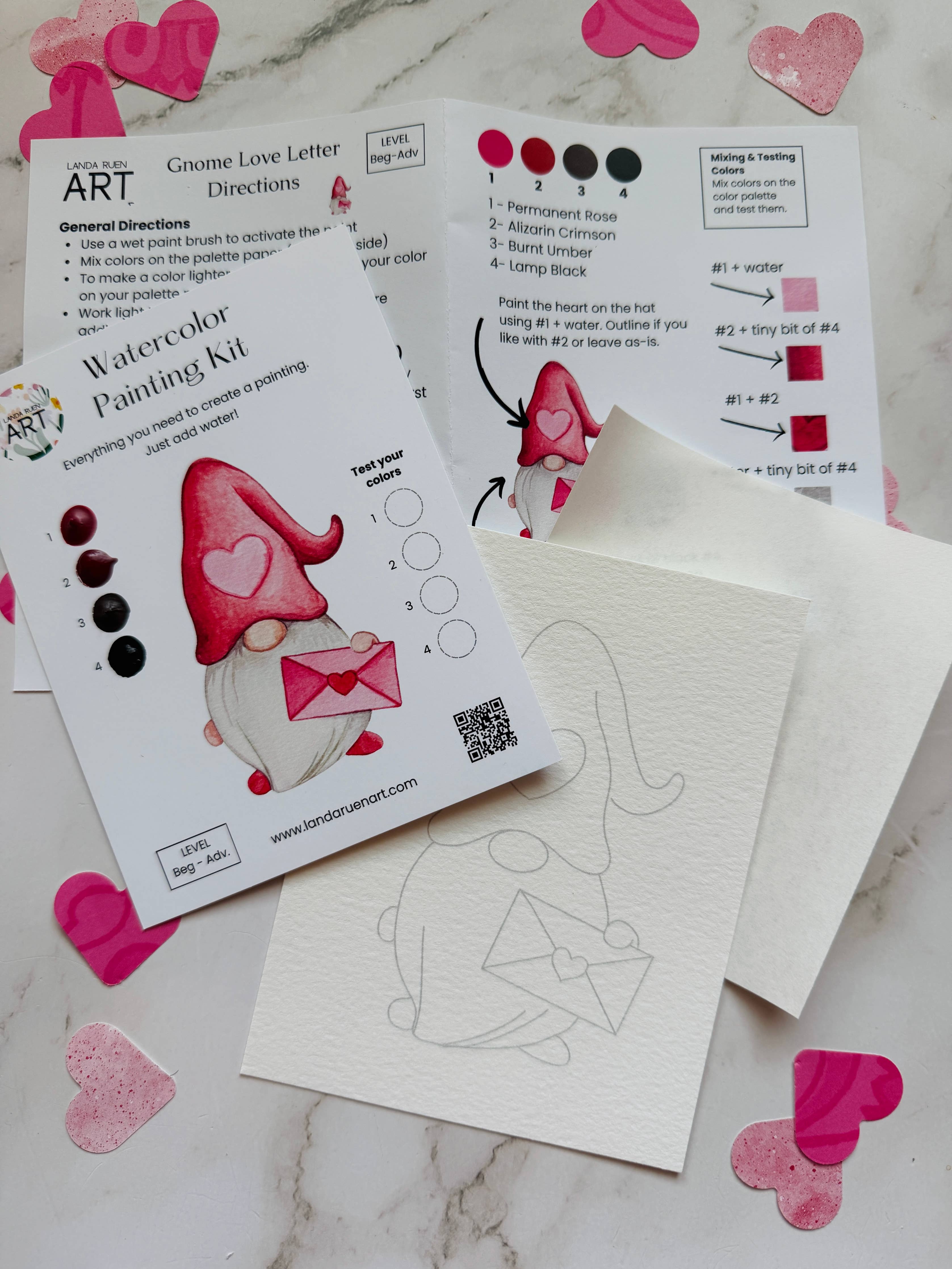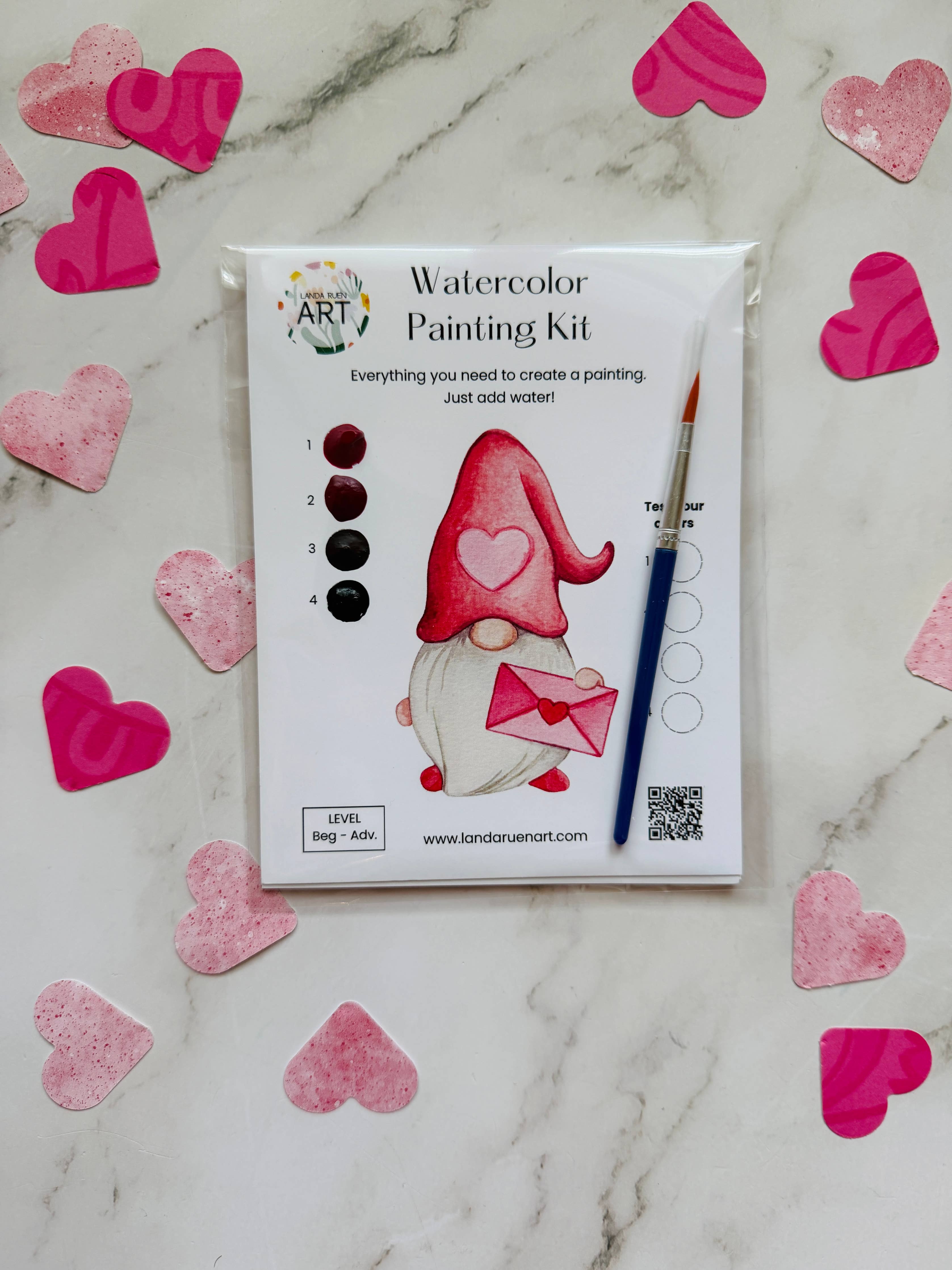 Love Gnome Watercolor Kit – Heartwarming Painting Project for All Artists Celebrate love and creativity with this charming Love Gnome watercolor painting kit. Featuring an endearing gnome clutching a love letter, this sweet design captures the warmth of the season and makes an ideal Valentine's Day activity or gift.