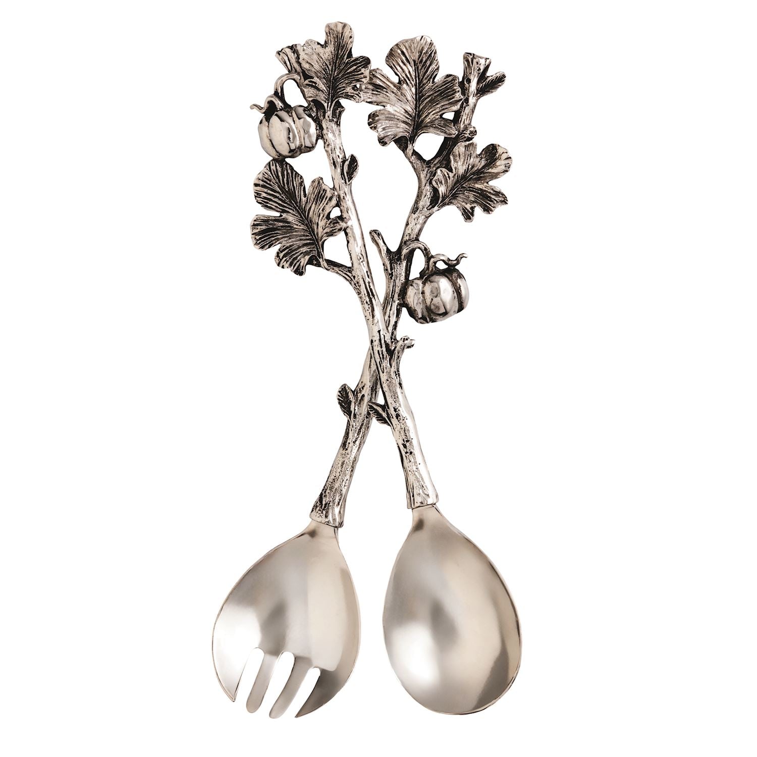 Elevate your dining experience with this 2-piece set of Metal Branch Servers. Crafted from durable stainless steel, these salad servers feature sculpted cast aluminum handles designed to resemble natural branches, adding a rustic yet elegant touch to your table. Perfect for serving salads or side dishes, their sturdy construction ensures long-lasting use while enhancing your presentation. Ideal for both everyday meals and special occasions, these servers combine functionality with artistic design to impress your guests.