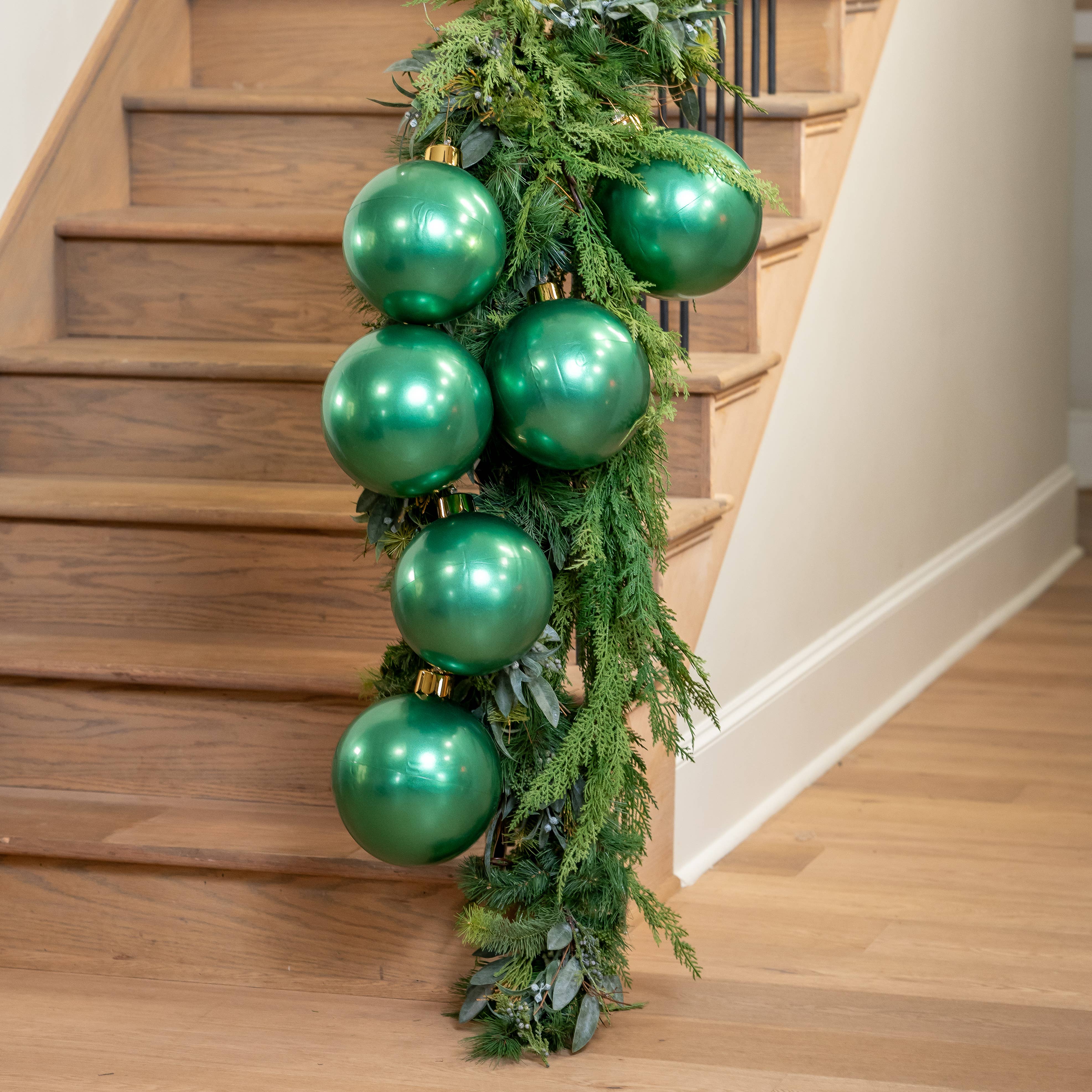 Bring festive charm to any room with the 8" Mini Vintage Green Trio—a set of three compact, inflatable ornaments perfect for creative indoor decorating. Each reusable Holiball features durable UV-resistant polymer construction that withstands any climate, plus simple setup with included toppers, plugs, and hangers. Deflate and store flat between seasons for convenient space-saving. Inflate using any standard household air pump, then display on shelves, mantels, or hang throughout your home. Easy to clean with soap and water, these versatile mini ornaments deliver maximum holiday impact with minimal effort.