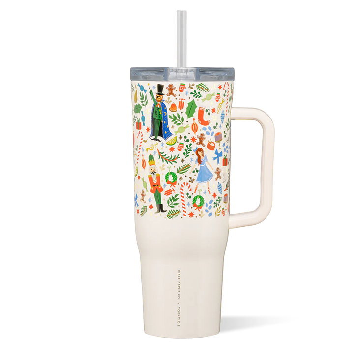 The Rifle Paper Co. x Corkcicle Nutcracker collection features tons of illustrated details from the classic ballet, all hand-drawn, accented in gold foil, and captured with show-stopping charm. Cruiser, our largest straw cup to date, keeps 40 oz of your favorite beverage cold for up to 20 hours, allowing you to enjoy everyday adventures without giving your hydration needs a second thought. It features an exclusive dual-function sip + straw spill-proof lid, a comfy soft-grip handle, and a stay-put silicone bottom to keep it upright no matter your destination or how many stops you take on the way.