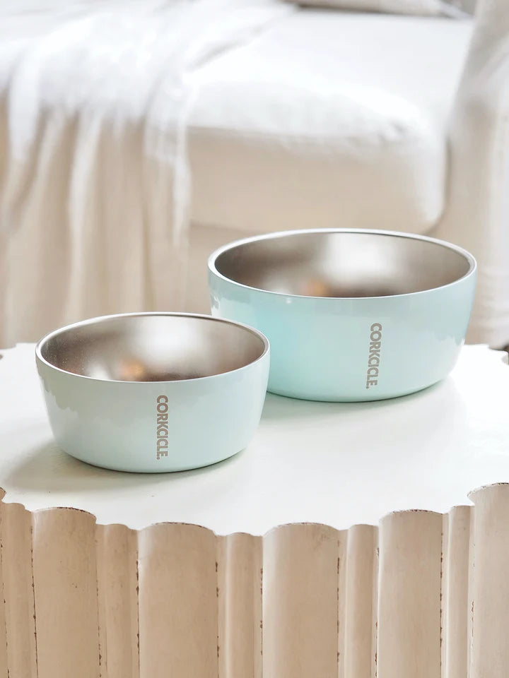 Meet the last dog bowl you'll ever need. Crafted in enamel-coated double-wall stainless steel, Corkcicle Dog Bowl elevates mealtime and water breaks at home or on the go. Our signature non-slip bottom and chew-proof durability make for a mess-free meal, and with its three stylish colorways, Dog Bowl can even match your drinkware. Available in two sizes, this dishwasher-safe vessel keeps them fed and hydrated and looks always cool doing it. Double-Walled Stainless Steel Top-Rack Dishwasher Safe BPA Free Non-Slip Silicone Bottom