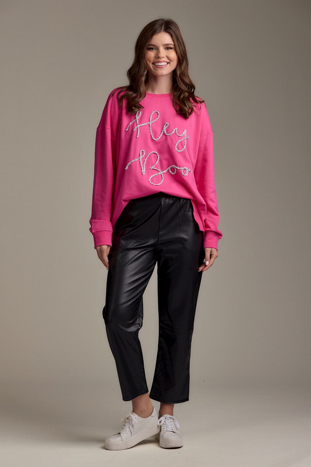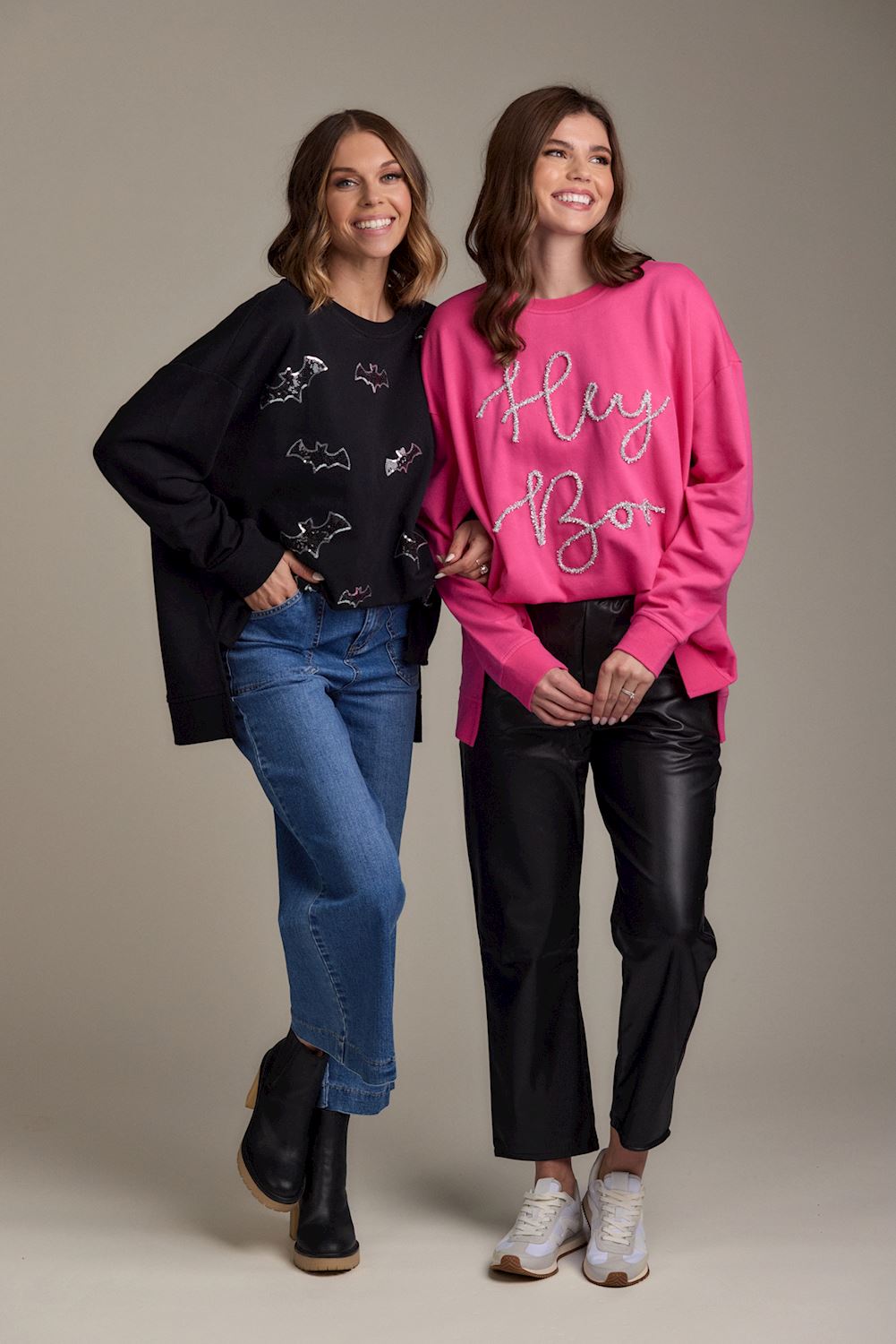 This Halloween Sparkle Sweatshirt combines comfort and festive style with its soft cotton blend fabric and eye-catching tinsel appliqué. Designed with ribbed sleeve openings and hem for a snug fit, it measures approximately 27" from shoulder to hem and fits most sizes. Perfect for adding a touch of sparkle to your seasonal wardrobe.