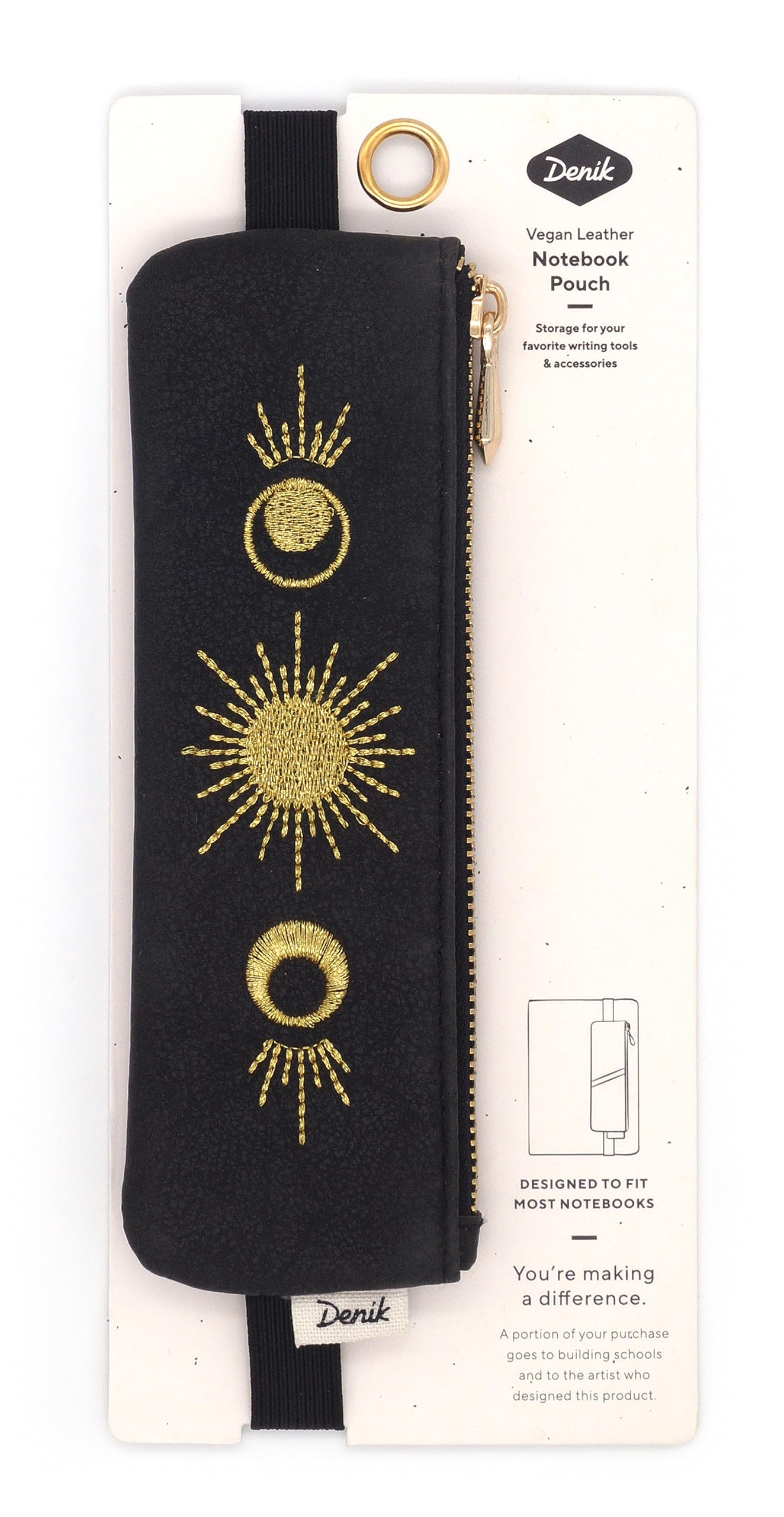 Keep your favorite notebooks and writing accessories together forever with our new notebook pouches. (Seriously, we're not sure why we didn't think of these sooner.) Embroidered design on soft faux suede, fully lined with an elastic band that fits around most notebooks.