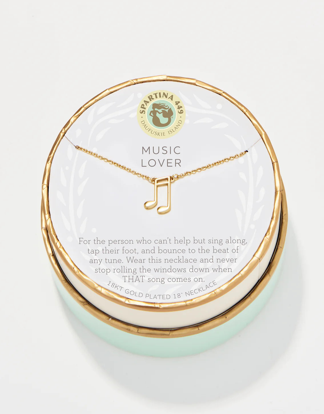 Wear our Music Lover Necklace as a reminder to sing along. Featuring a music note charm, this special piece comes packaged inside a beautiful box with the message: "For the person who can't help but sing along, tap their foot, and bounce to the beat of any tune. Wear this necklace and never stop rolling the windows down when THAT song comes on."