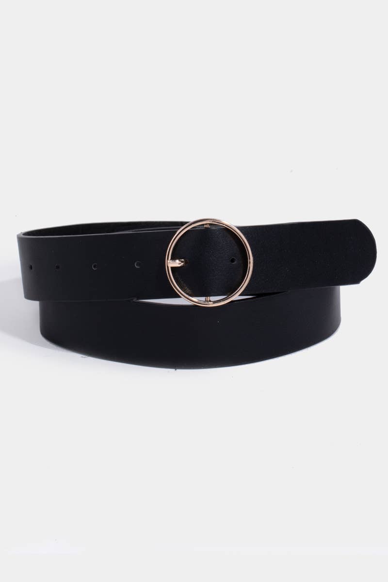 Thin Circle Buckle Faux Leather Belt