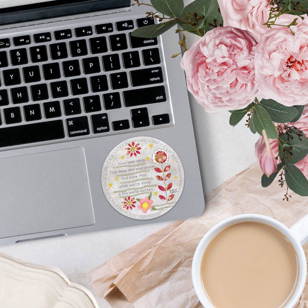 Perfect for adorning your water bottles, laptops, and more. We love, love, love these stickers! Details: * Printed on high-quality vinyl * Water/weatherproof and resistant to fading, scratching or tearing. * Dishwasher-safe * Size: 3″ x 3″